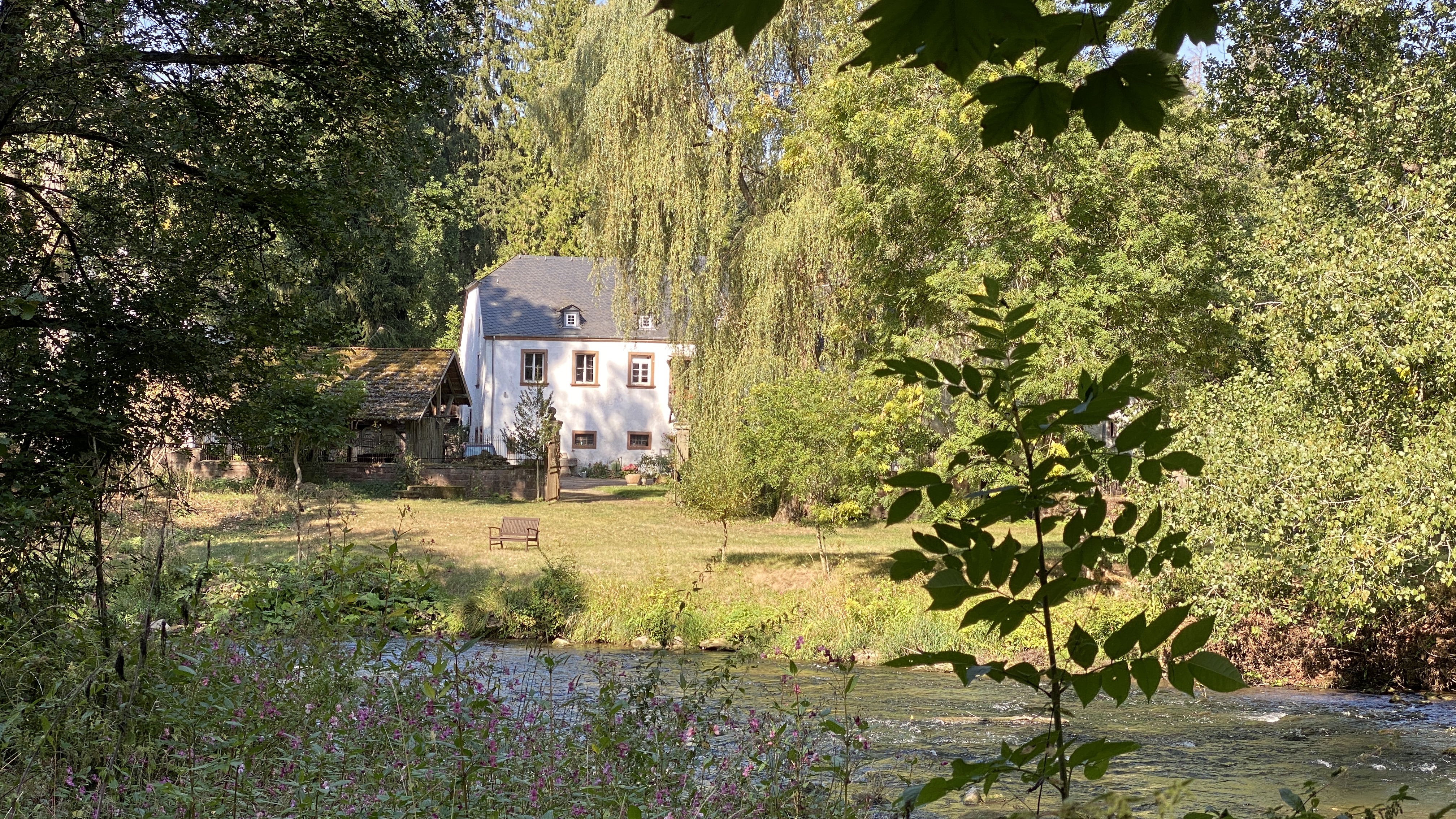 Das Haus bei Phillippsheim liegt idyllisch direkt an der Kyll und ist von viel Grün umgeben.