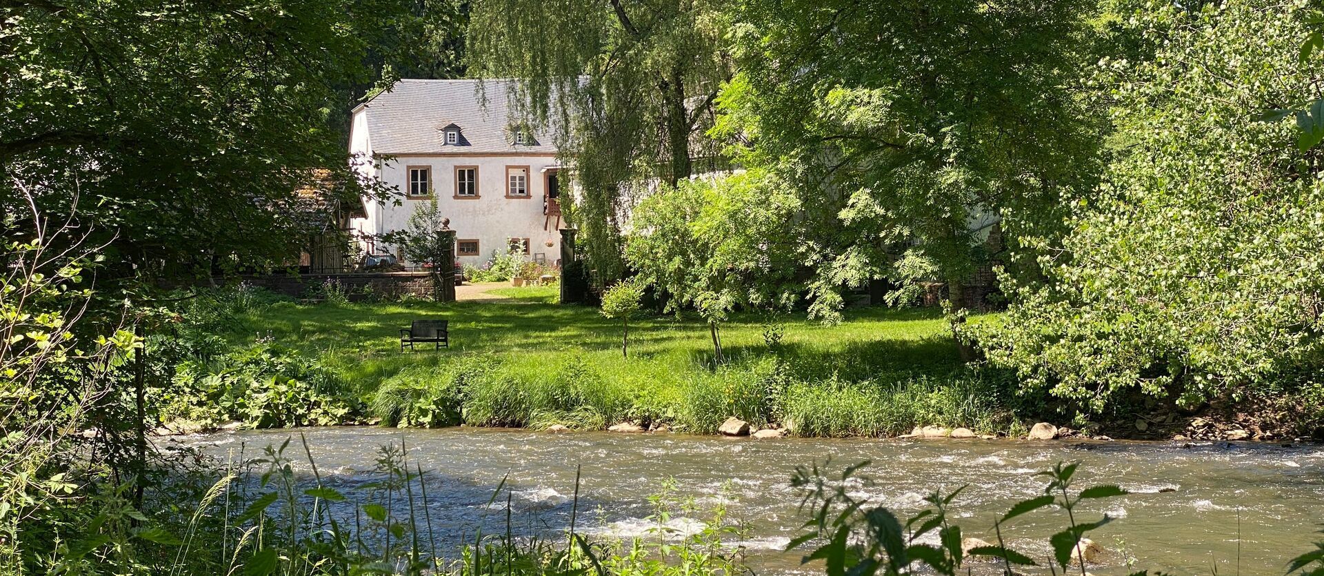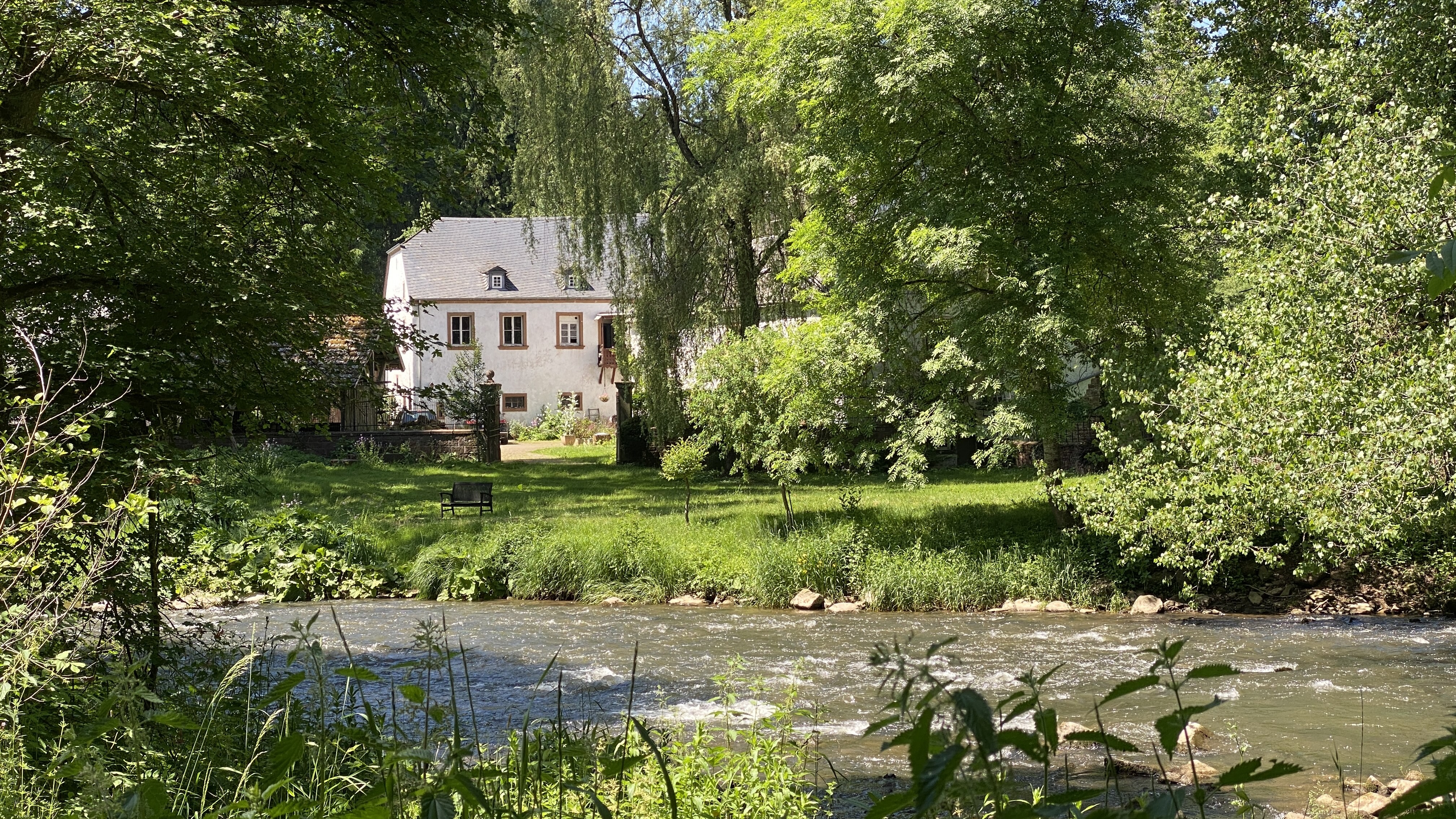 Das Haus bei Phillippsheim liegt idyllisch direkt an der Kyll und ist von viel Grün umgeben.