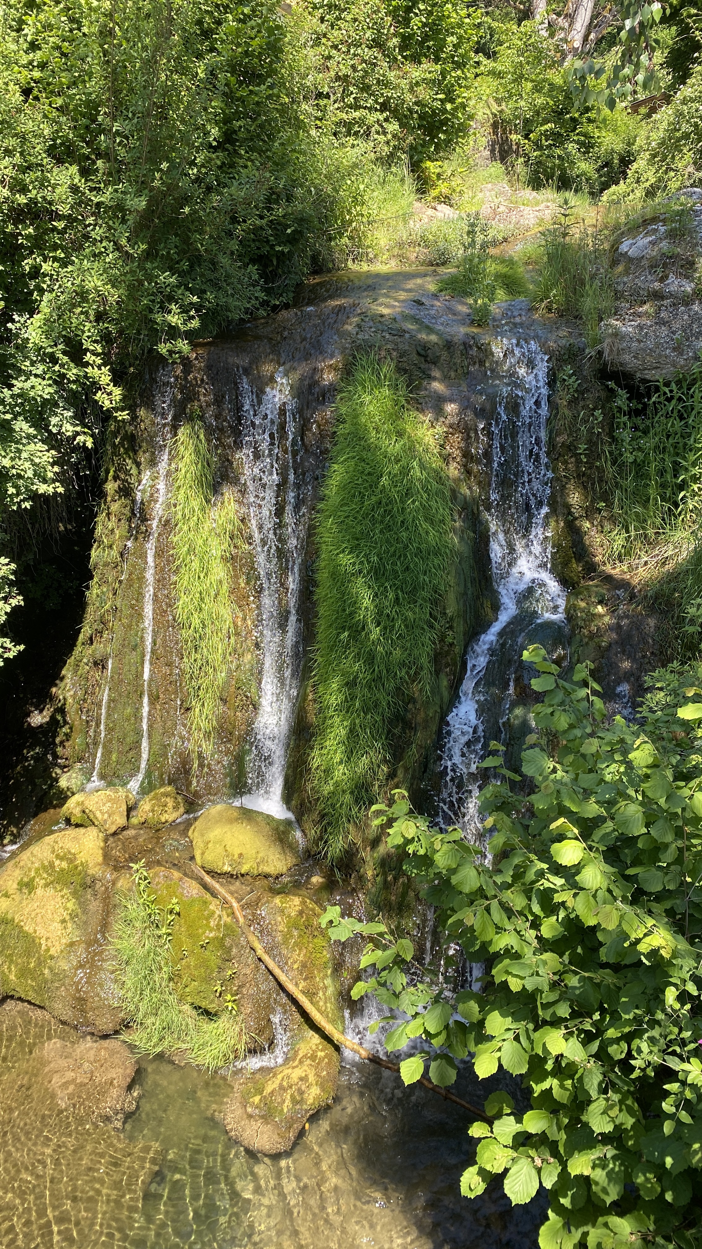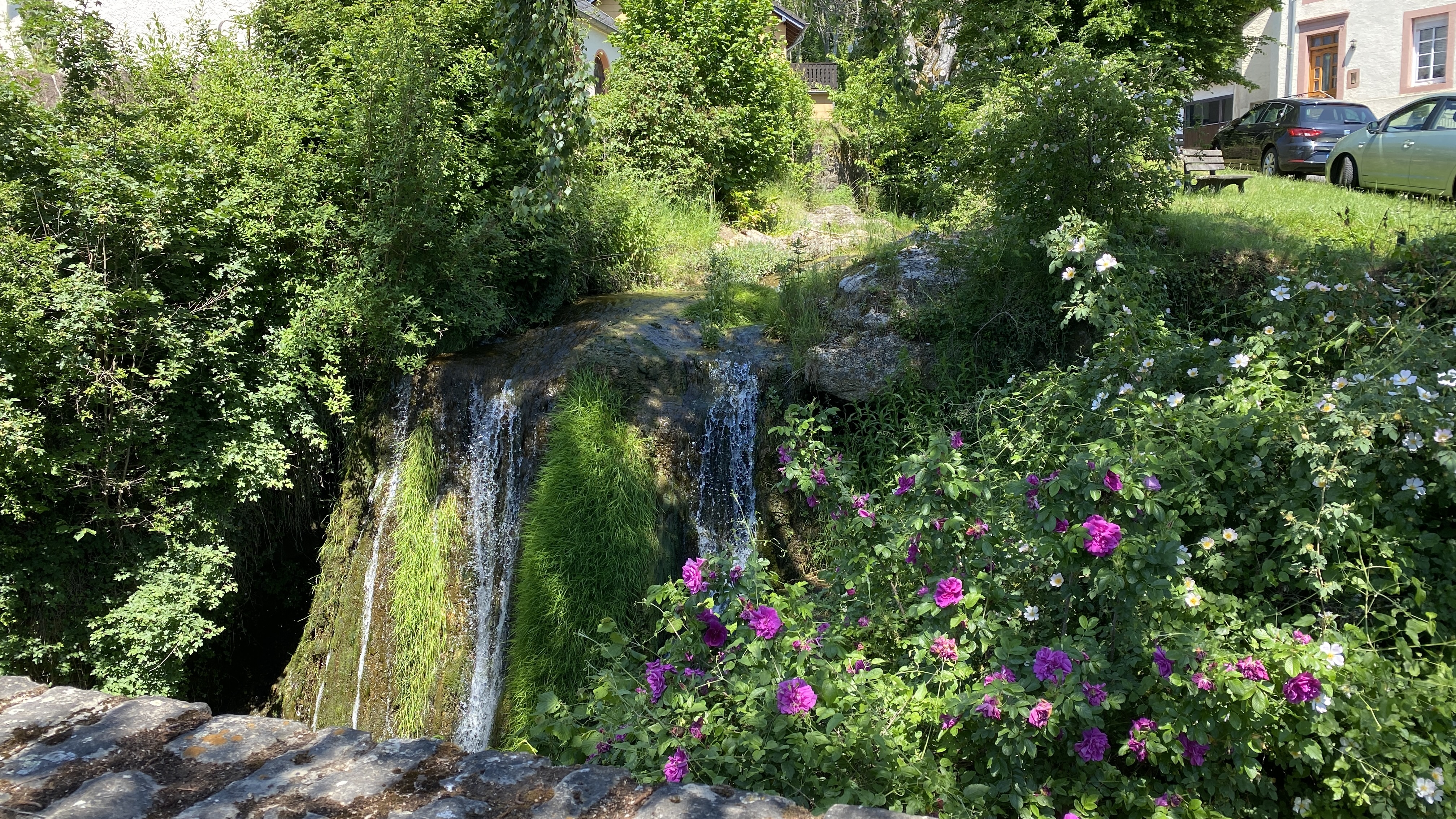 In Hüttingen an der Kyll fällt der Dorfbach über eine etwa 5 Meter hohe Kalktuff-Stufe direkt neben der St. Antonius-Kirche zu einem malerischen Wasserfall, der als Naturdenkmal zu den sehenswerten Naturschönheiten des Ortes gehört.