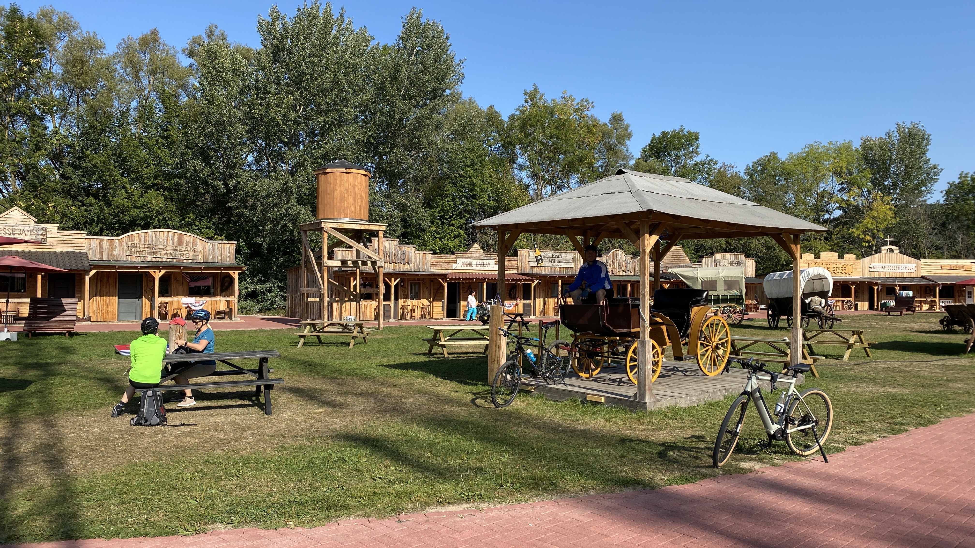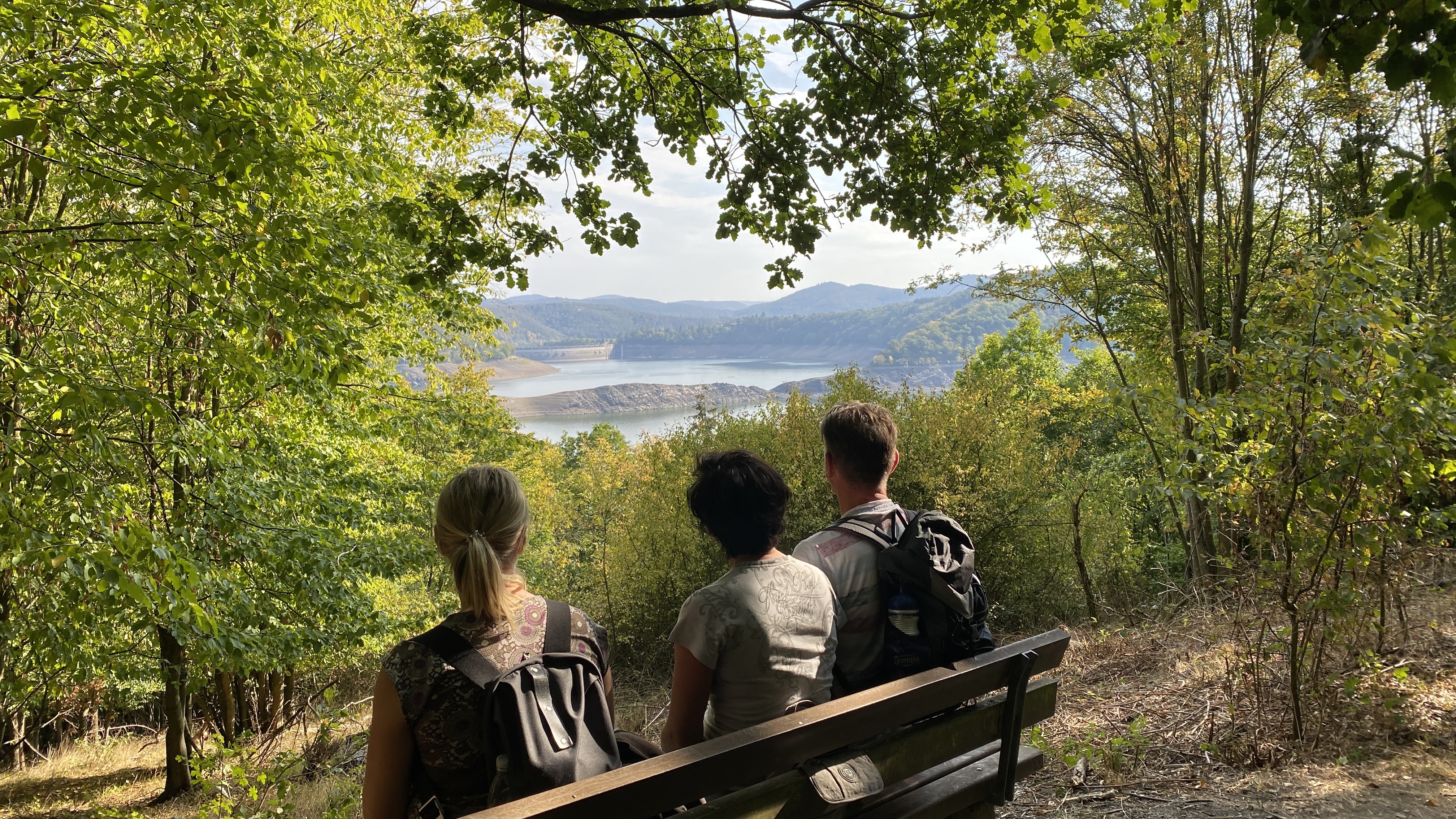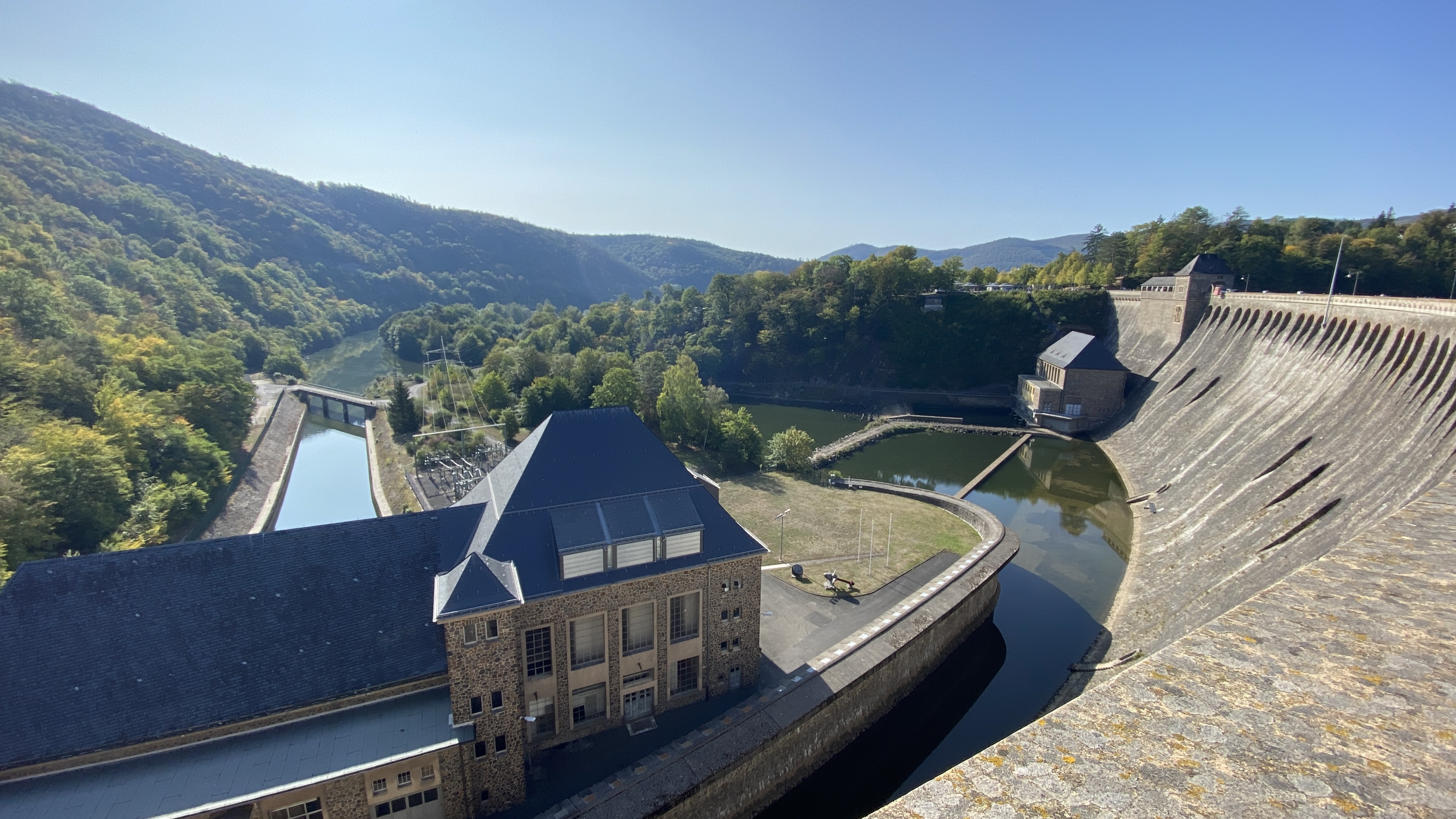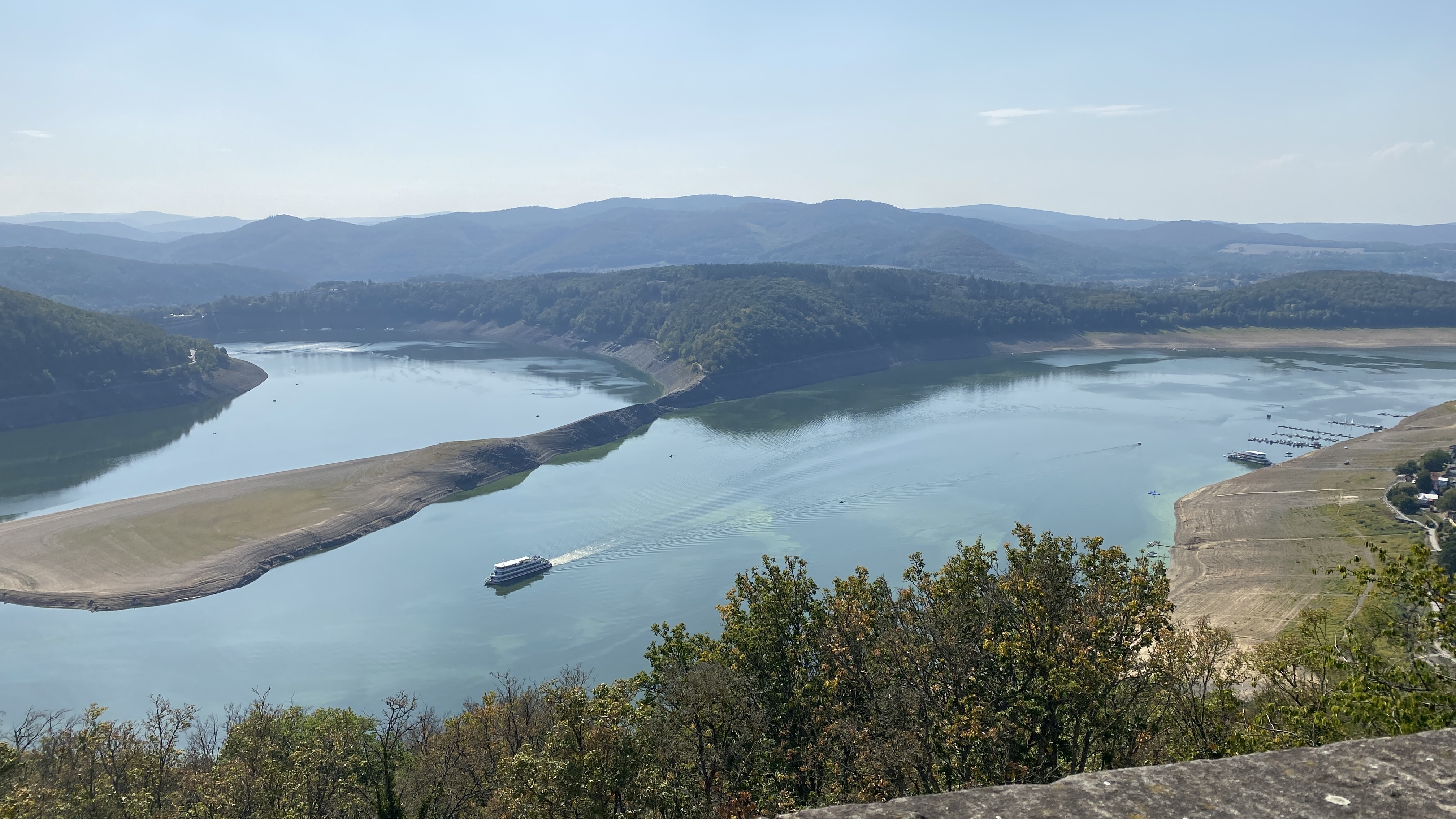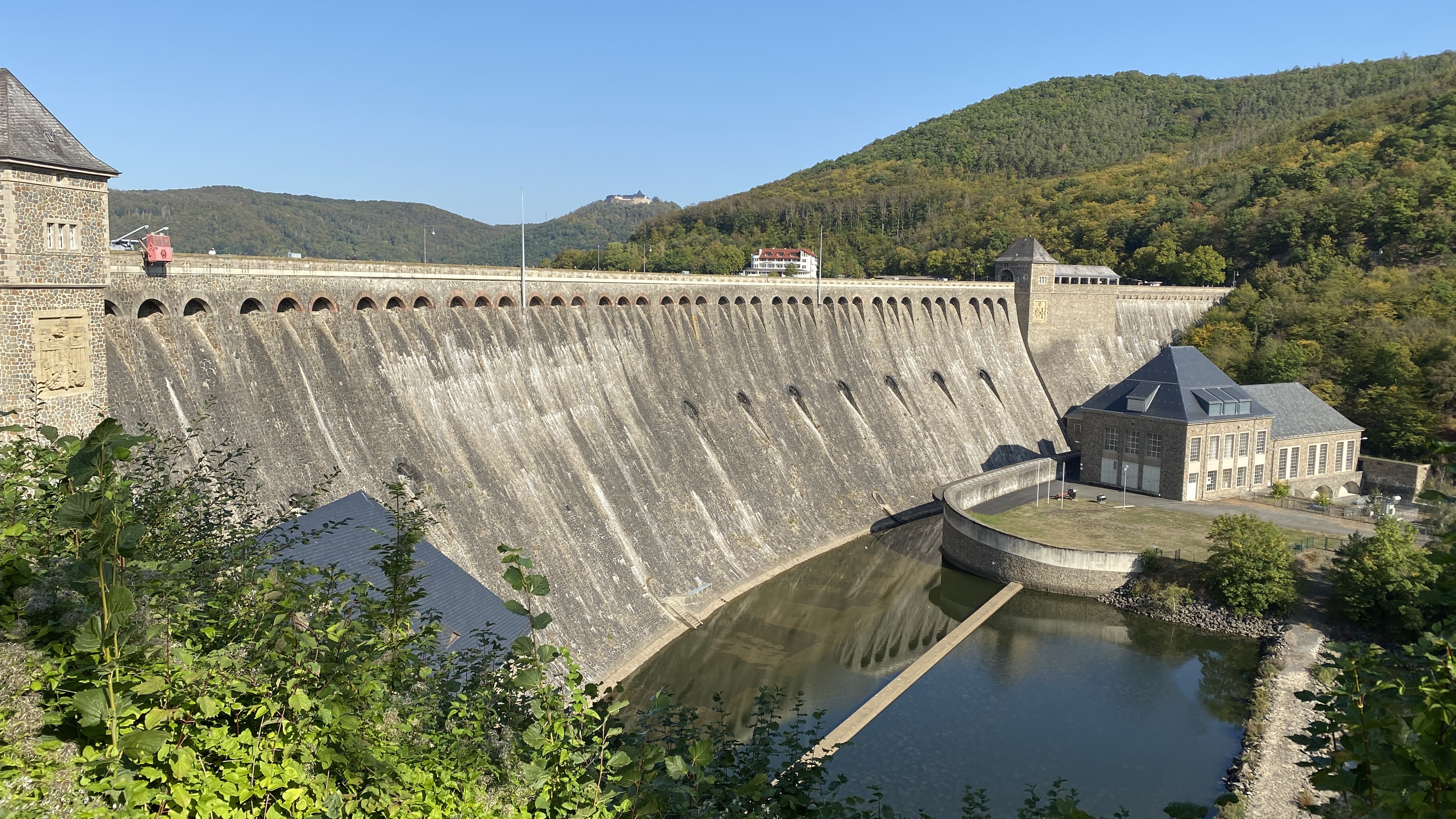 Radtour von Waldeck am Strandhaus am Edersee mit einer leicht bergab führenden Strecke zum großen und beeindruckenden Staudamm. Auf dem Weg liegt auch eine Westernstadt, die wie eine echte Stadt aus dem Wilden Westen aussieht. Außerdem befindet sich dort das „Tolle Haus“, das komplett auf dem Kop
